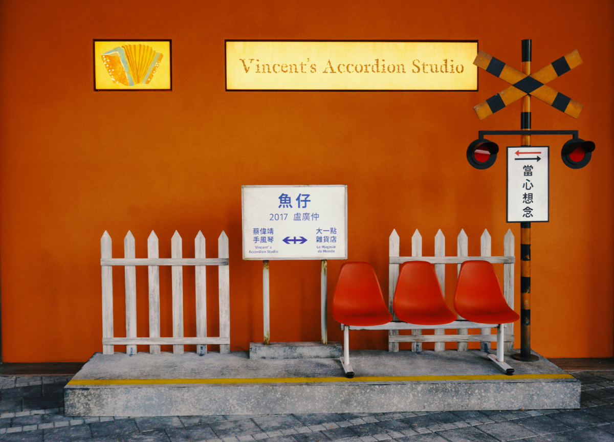 從照片中就可以看到,整個園區以「華語金曲」為靈感打造復古月台,上面寫的都是在華語歌壇屹立不搖的經典名曲,像是周杰倫首張專輯中的〈黑色幽默〉、KTV必點對唱情歌〈傷心酒店〉、S.H.E超夯歌曲〈熱帶雨林〉、盧廣仲的經典〈魚仔〉、李英宏〈台北直直撞〉等等,都讓人光看歌名就回憶滿滿呀!