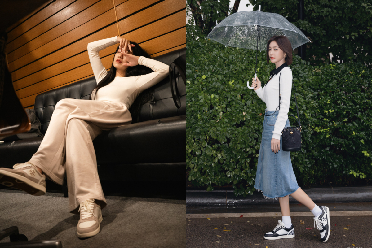 劉雯腳上同款是白色Clover Court 四葉草運動鞋;品牌代言人秦嵐也身著Tory Burch 2023秋冬系列搭配黑白色Clover Court 運動鞋;孫盛希則是搭配沙色Clover Court 四葉草運動鞋出鏡,展現隨興鬆弛的街頭態度。