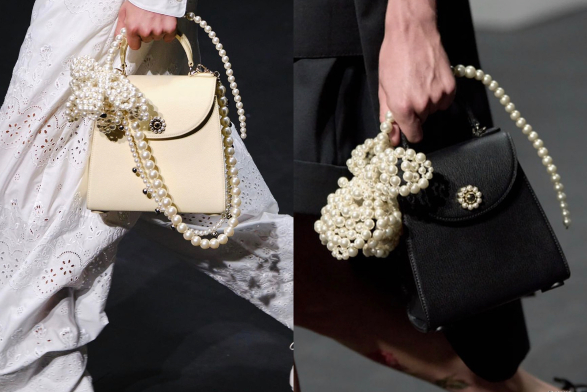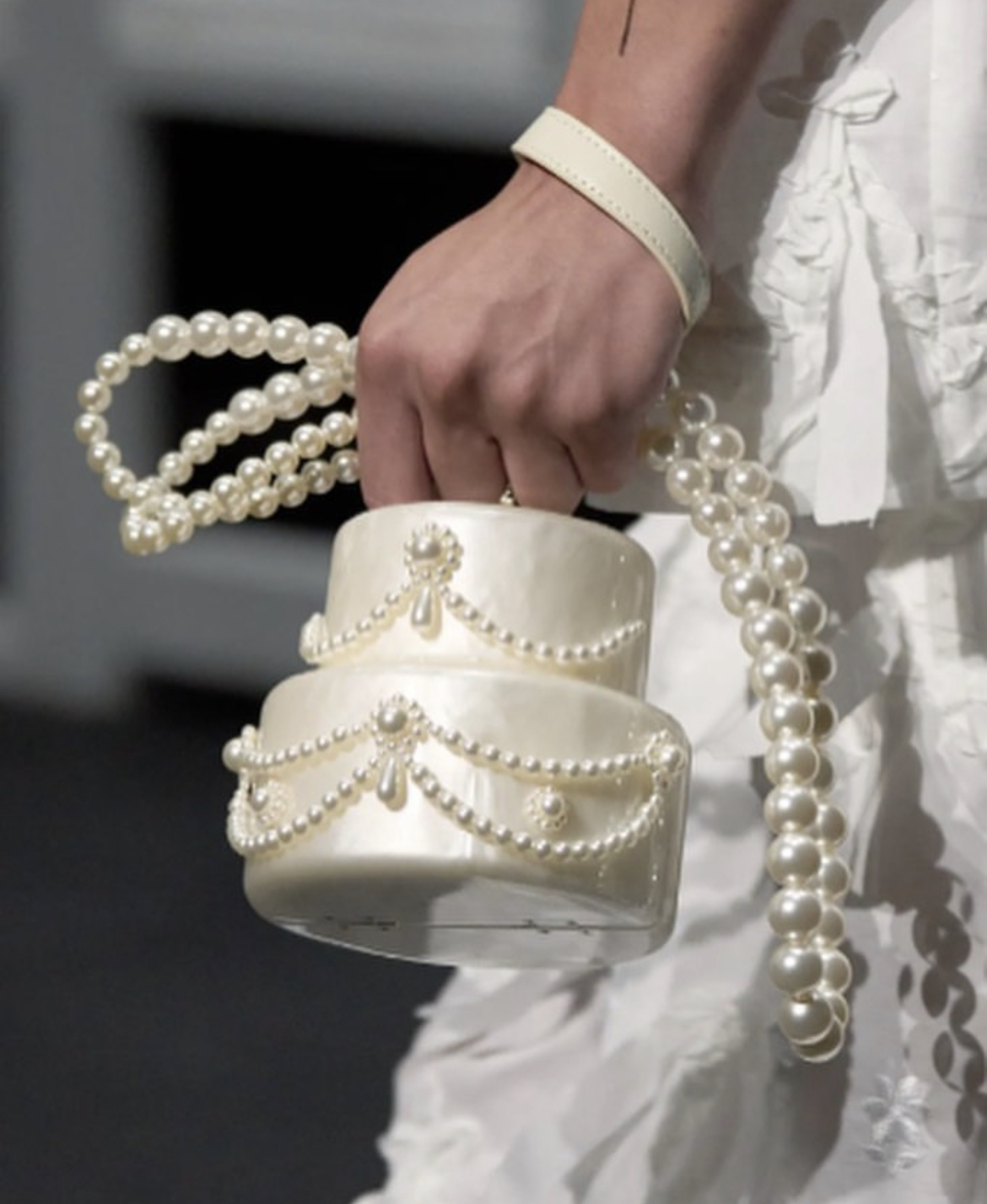 包款也走夢幻可愛路線,有著迷你蛋糕外型的設計,連肩背鏈帶全都是珍珠!或是黑白色系的方正包型,看似低調實則也是綴滿了珍珠,會不會太可愛~