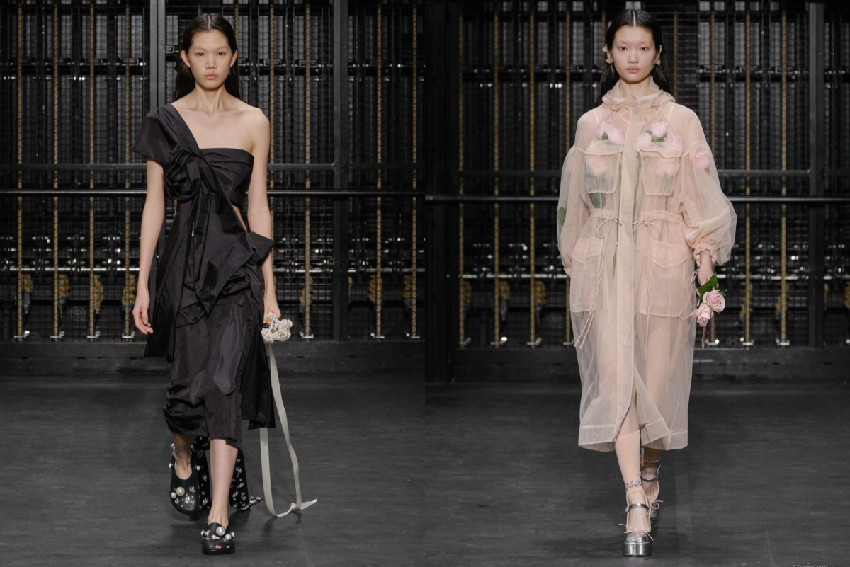 這次倫敦時裝周發布的SS24春夏系列,將地點選在英國芭蕾舞學院 English National Ballet 排練室,秀場佈置成灰黑色調,以浪漫玫瑰為主軸,質料上選擇透明感和輕薄物料,衣服裡藏起一朵朵玫瑰鮮花,帶有若隱若現的效果,品牌標誌性的蝴蝶結與珍珠也以最浪漫的形式回歸在春夏系列上。