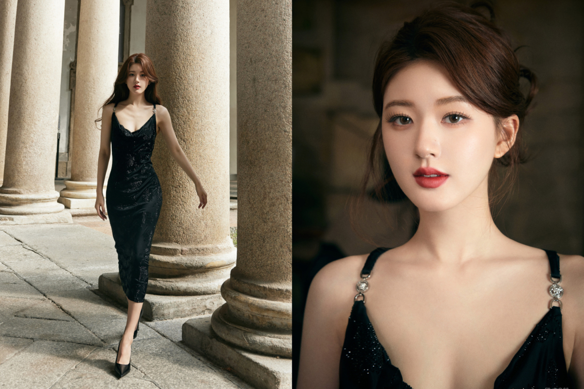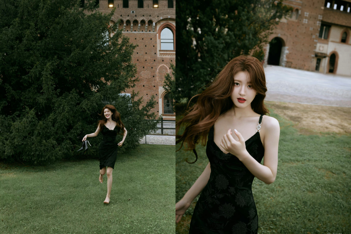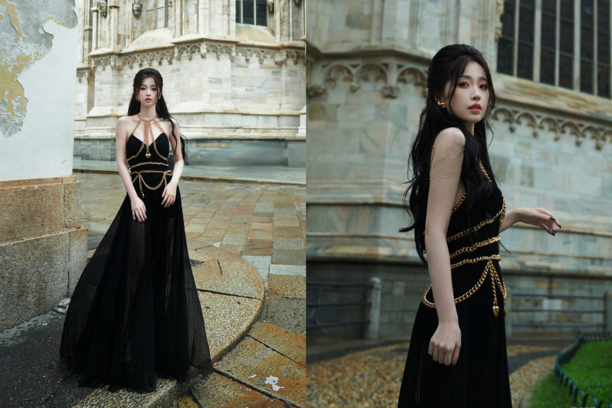 這是趙露思首次受邀飛往國外出席國際時裝周,最新曝光的米蘭時裝週造型,身穿Versace黑色細肩亮片連身裙,服裝上的亮片元素點綴出些許光澤感,肩上飾有品牌標誌性圖騰美度莎的精緻細節,大方秀出直角肩,低胸設計性感又迷人,放下一頭飄逸的隨性長髮,畫上精緻秋系妝容,狀態簡直好到極點!