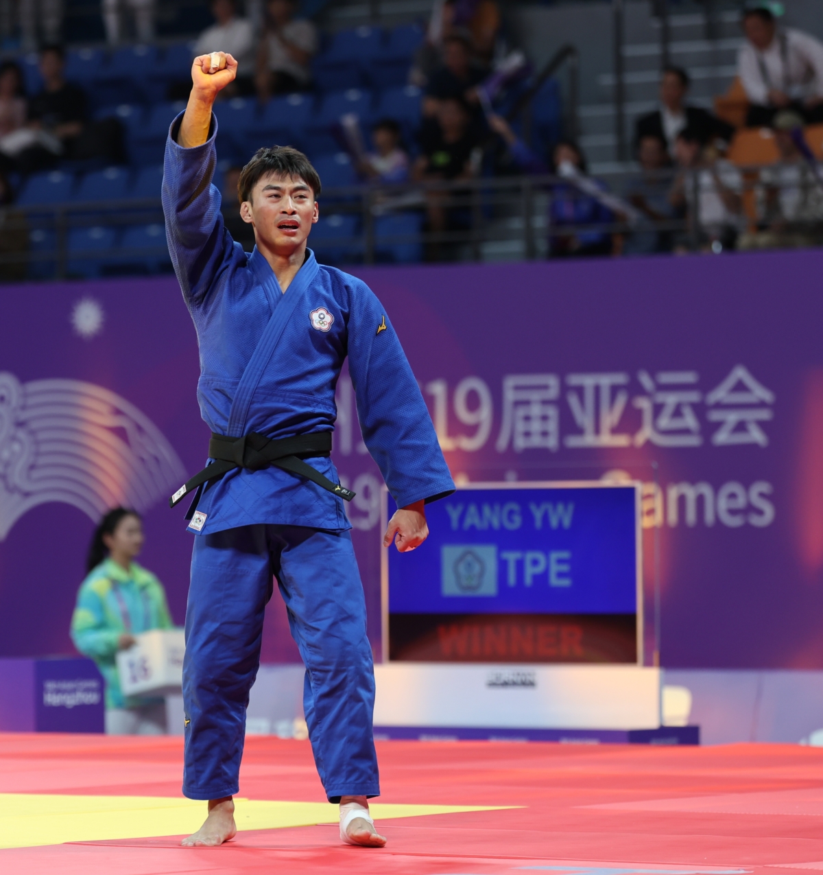 這次楊勇緯再戰杭州亞運,接連擊敗吉爾吉斯、日本與蒙古選手,在締造台灣男子選手首度闖進亞運決賽紀錄後,金牌戰與南韓對手李夏林一路僵持,還同時收到一次指導,但楊勇緯在比賽倒數26秒取得半勝優勢,最後守住勝果,爲台灣奪下杭州亞運第1金,更是隊史第100金!