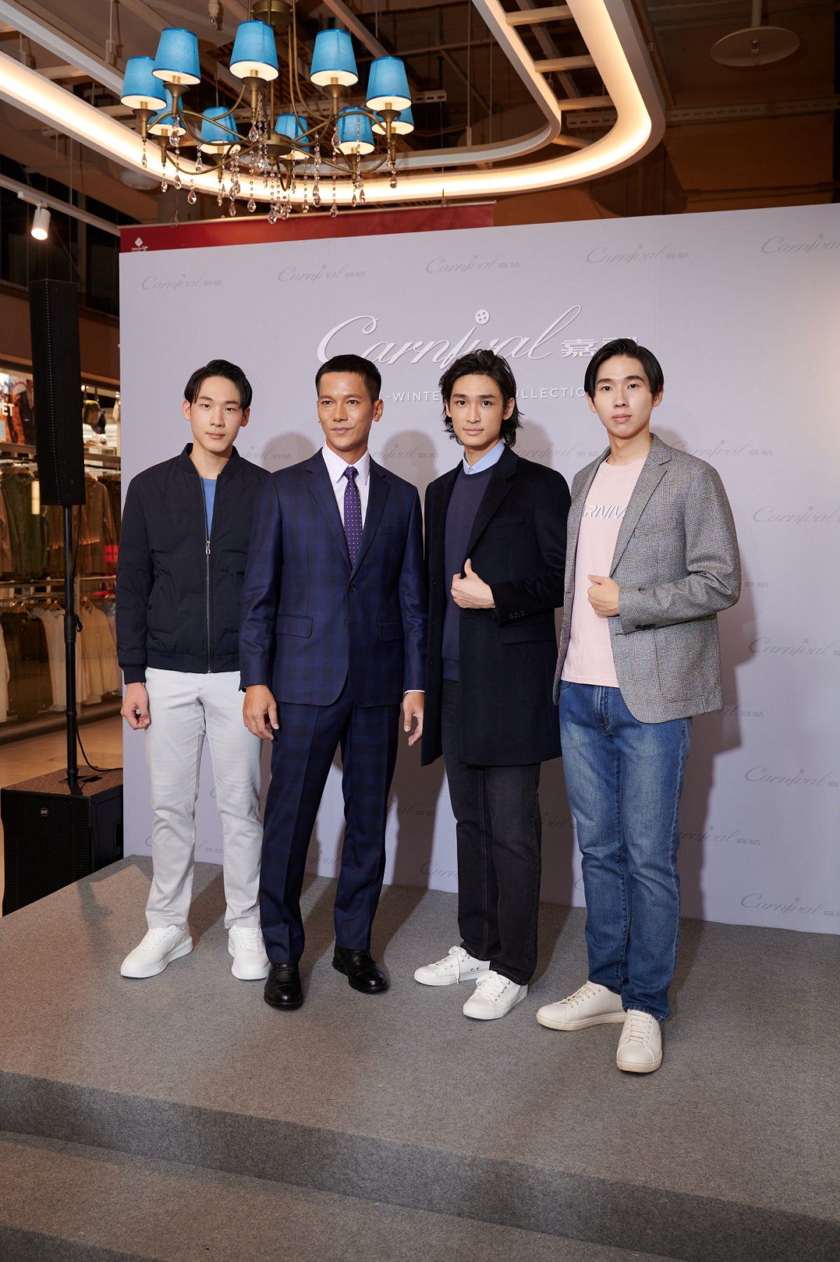 嘉裕年度代言人梁瀚名擔任此次活動嘉賓,精采詮釋秋冬主題「曠野奇境」,展現時尚型男的多變風格。梁瀚名並帶領一同開拍網路校園劇的同門師弟蔡弘燁等出席活動,演繹不同的魅力風采。活動上梁瀚名共展演三套服裝。第一套SUPER 150'S 精紡羊毛成套西裝,極細緻的SUPER 150'S羊毛纖維,具優異透氣及保暖性,可適應各種氣溫,貼合亞洲人身型的剪裁,突顯時尚男士優雅風格。第二套是正式休閒混搭,上身以灰色格紋獵裝外套,搭配丹寧褲,打造不經意的低調魅力。第三套休閒款式,上身外套是嘉裕秋冬全新產品,具有獨特肌理感的泡泡紗材質,擁有絕佳透氣性,相當適合濕熱型氣候的台灣,下半身搭配彈力輕磨毛長褲,俐落有型。小師弟們則身著嘉裕2023年全新打造的Carnival Generation新職裝系列,為社會新鮮人設計的版型與剪裁,修身俐落,選用低調沉穩色調及不同面料,展現紳士般的優雅氣質;同時具備吸濕排汗、抗UV雙重機能,完美彰顯自信品味。