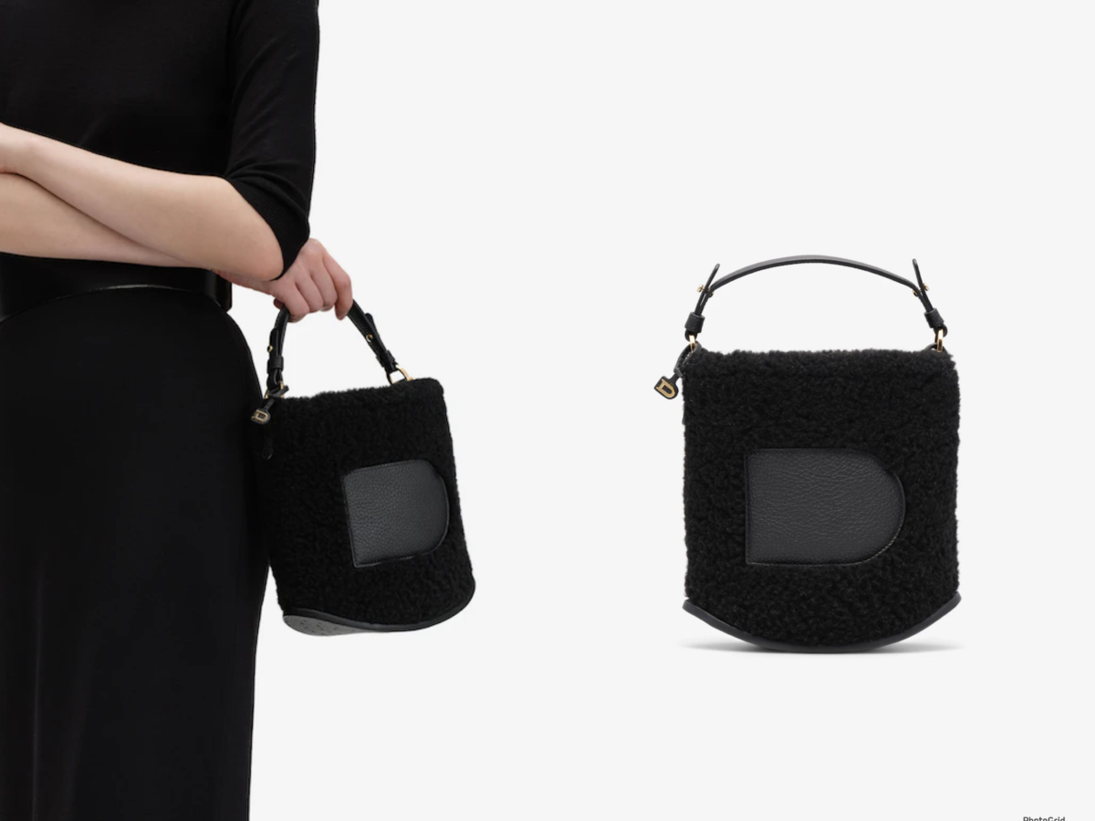 Delvaux 經典水桶包採用Shearling小綿羊皮毛與Taurillon Soft柔軟小牛皮製成,搭配優雅金色金屬配飾, 配有Pin系列經典D形外置口袋與按扣設計,以黑色為主色調的羊毛手袋比起棕色更凸顯個性,想擁有一顆低調的毛絨手袋,非它莫屬!