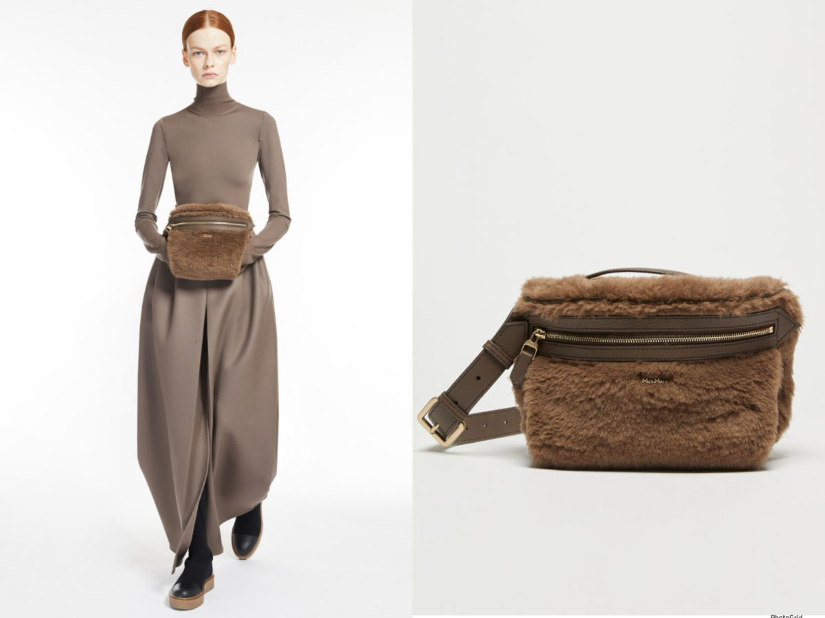提到泰迪熊毛絨編輯絕對第一個想到Max Mara,不只有泰迪熊大衣,毛絨包也是配件重點!這顆羊駝毛腰包顧名思義是以羊駝毛來製作,質地柔軟飾有鹿皮細節,配有單提手和帶叉扣的可調節腰帶,較少見的腰包形式,可以佩戴在腰部或斜挎方式,正面印有 Max Mara 標誌,男生揹起來也超時髦!