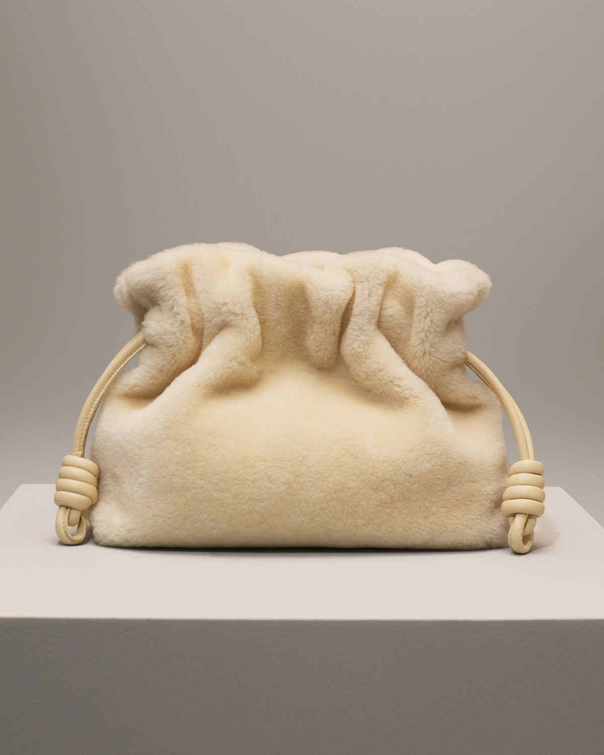 LOEWE Flamenco 束口包在今年推出全新版本,採用剪羊毛製成,帶有同色調的皮革錶帶,包身上方仍以拉繩束口,捧在懷中或以斜背方式都合適,宛如一顆軟綿綿的玩偶般,可愛度直接爆表!