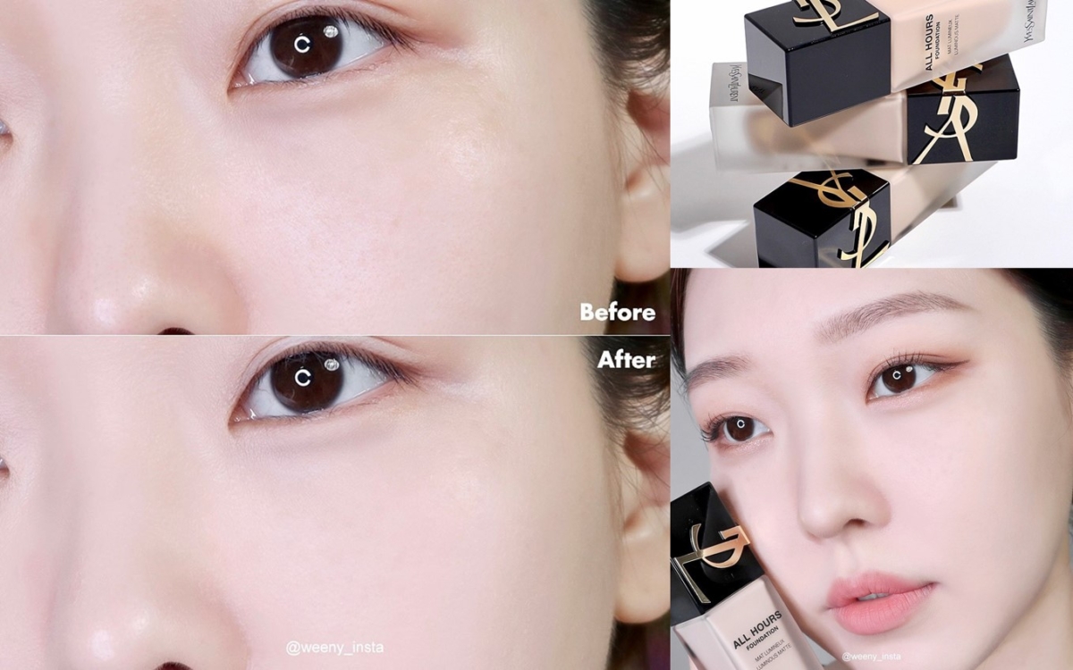 這邊也提供給大家一個換季上妝小Tips!完成基礎保養後先使用YSL「恆久完美無瑕持久粉底」打造平滑柔焦、輕盈服貼的基底,再局部壓上YSL「恆久完美霧光氣墊粉餅」,製造細膩的水潤透亮感同時保持油水平衡,進一步製造極致無瑕的妝效,不需濾鏡也能擁有讓人超羨慕的水霧光美肌!