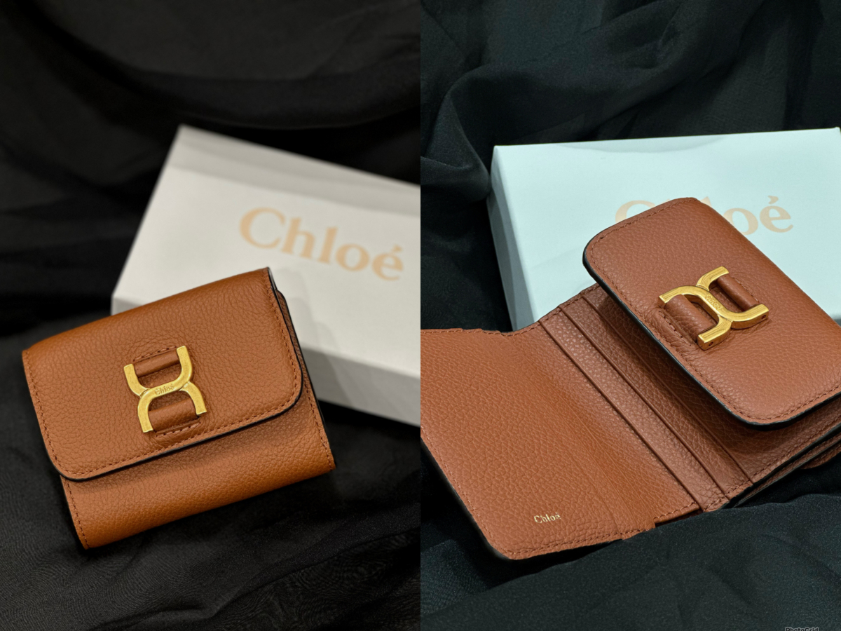 Chloe Marcie 金屬LOGO 焦糖棕三折短夾,大家一定都不陌生,正是來自品牌最經典的Marcie系列,很經典的雙馬鞍的標誌,搭配稍微偏酒紅一些的棕色調,正面飾有金色LOGO點綴外型,零錢格特別設計在中間的位置,讓整體拿起來超有份量、質感,價格也在兩萬初,非常好入手!