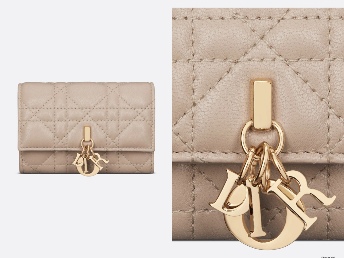 還記得JISOO前陣子機場造型和巴黎遊揹上的黑色Miss Dior肩背包嗎,品牌接續推出以 Miss Dior 為設計靈感的小型錢包,以米色 Cannage 經典藤格紋圖案小羊皮及意大利工匠純手工製成,正面綴以金色 D.I.O.R. 吊飾,配有2個卡片隔層、1個拉鏈隔層,還有1 個寬敞的內部隔層,雖然小巧但卻精緻,誰能不喜歡Dior!