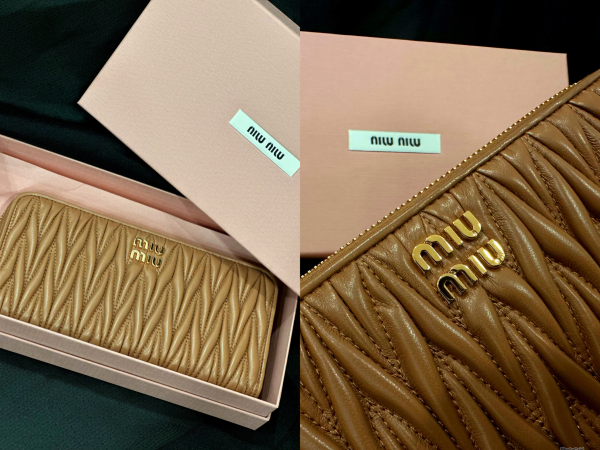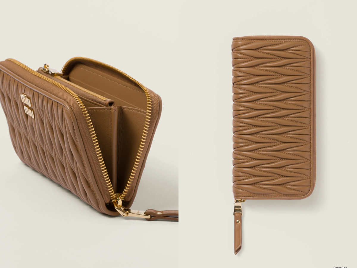 最後這款MIU MIU Matelassé焦糖色納帕軟皮長錢包,同樣來自 matelassé 包身圖案,正面綴有金屬印字標誌,並以品牌經典的Matelassé圖案呈現精緻的立體質感,採用拉鍊開合的設計,寬敞的內層也備有8個卡槽、2格鈔票隔層、2個內袋和零錢格,MIU MIU 最近也被評為最熱門品牌,聲勢大漲,今年秋冬先入手一顆MIU MIU 長夾也是不錯的選擇!