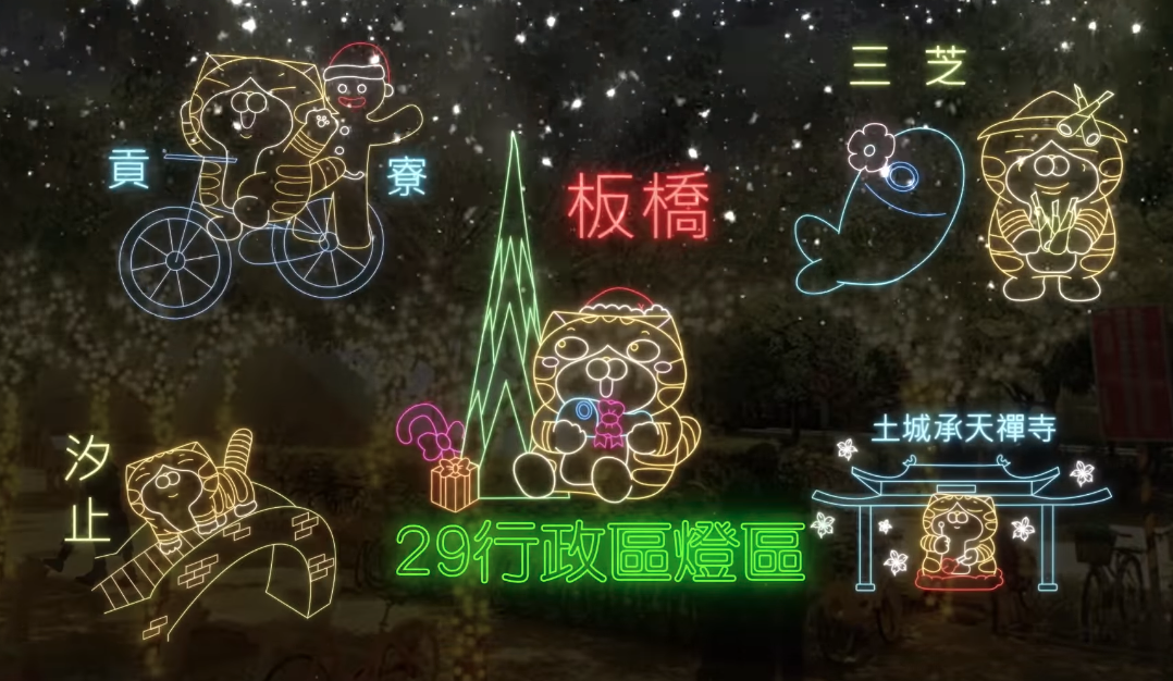 萬坪公園則進駐「白爛貓的甜蜜耶誕派對燈區」;府中廣場還有全台唯一「巨型薑餅人樂園燈區」,最後別忘了還有「白爛貓的29個舞臺」,將新北地景及在地特色美食結合,幽默現身新北歡樂耶誕城!