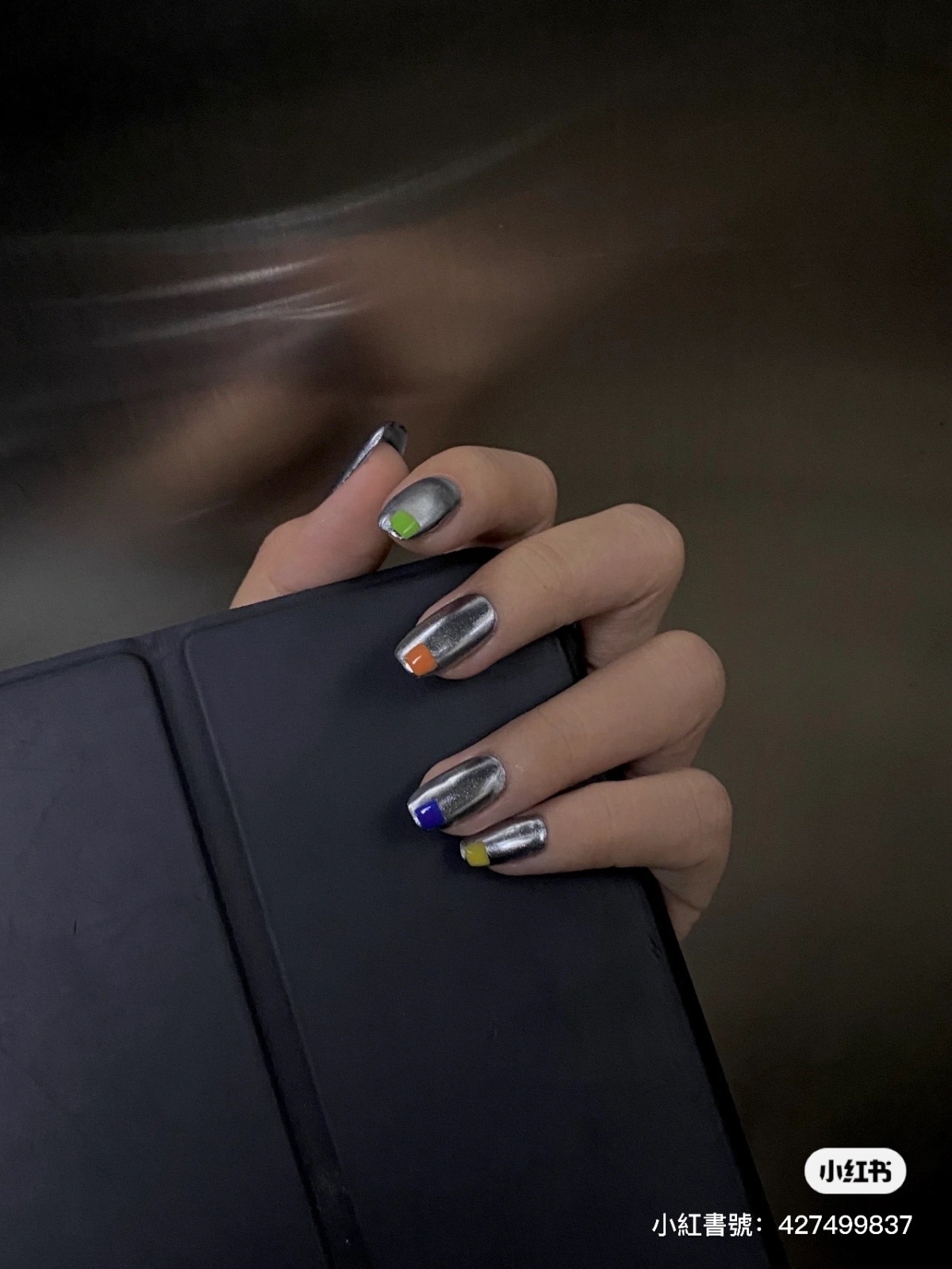 5. 彩色搭配銀色美甲