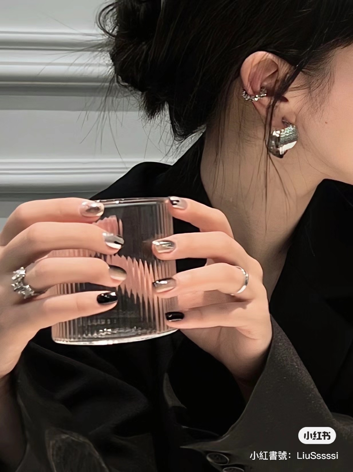 1. 黑色暈染銀色美甲
