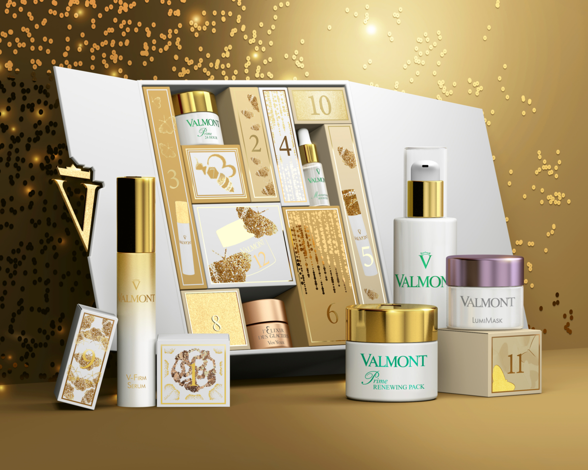 Valmont年度聖誕禮盒以金光閃閃亮片綴飾,包裝12款經典商品,一起慶祝即將來臨的年末聖誕!