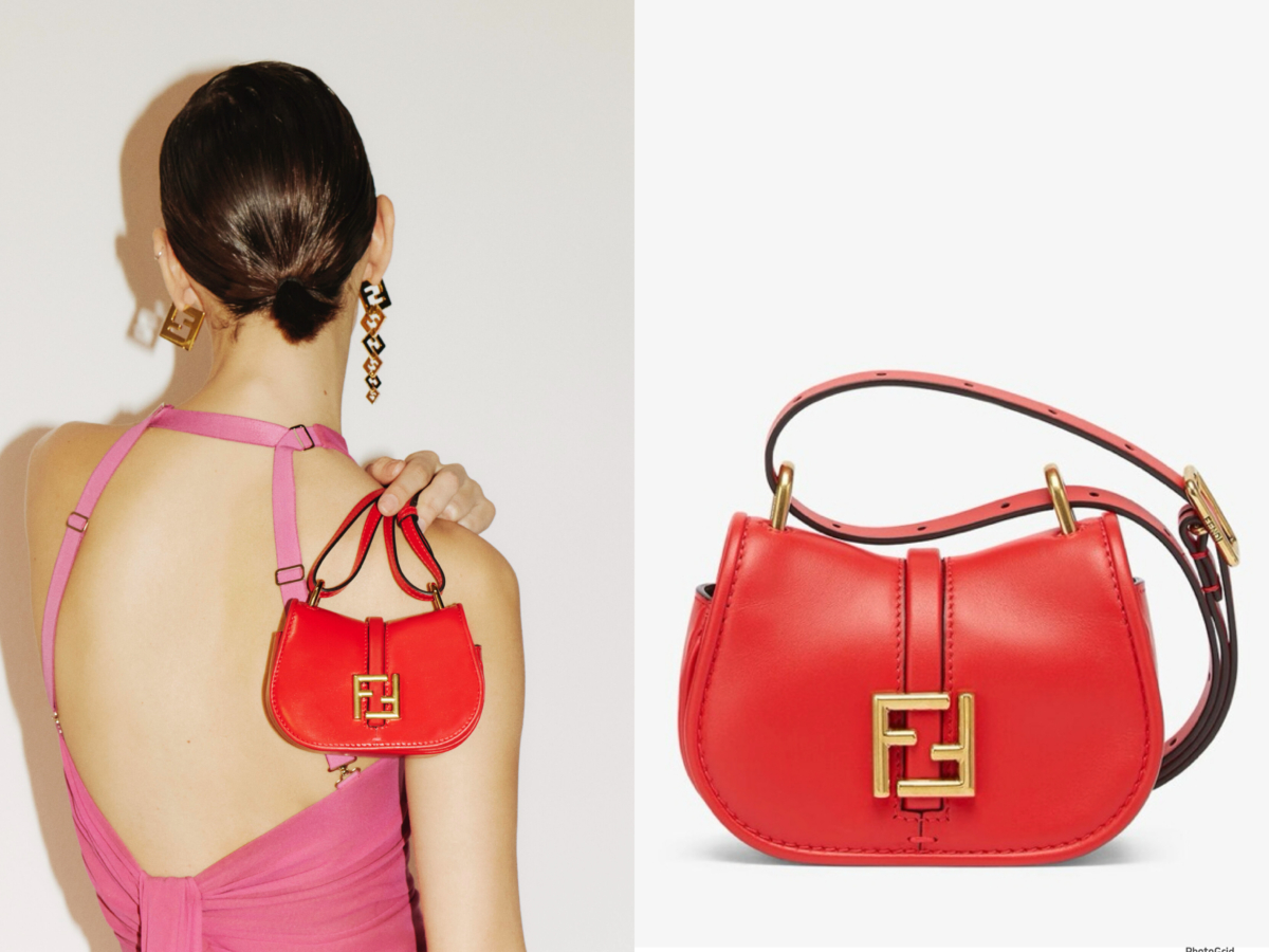 大包當道,小廢包也不退流行!超迷你款式經典 FENDI C'mon 包款,飾有翻蓋和FF磁扣開合設計,可以當作吊飾掛在腰帶上,細長的可調式肩帶設計也可以斜背,迷你款搶先推出紅色皮革,並綴有復古鍍金金屬配件,無可挑剔的完美比例創造出圓潤柔和的廓型,柔美曲線與細微稜角相輔相成,太可愛啦!