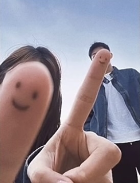 #一前一後錯位手指頭遮臉