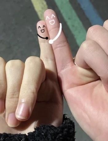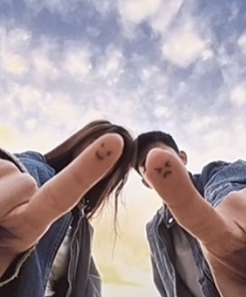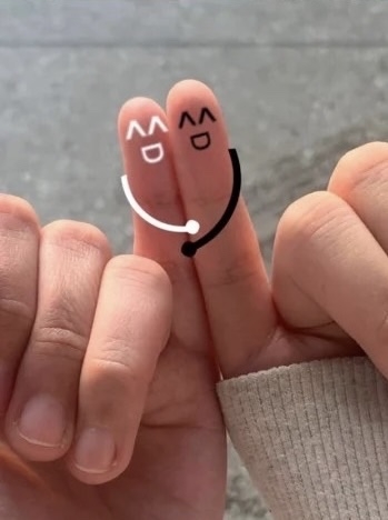最後終極版的手指頭遮臉姿勢就是「完全不用遮」~兩人只要秀出彼此的小拇哥並貼在一起,再畫上互相抱在一起的小手手,這樣就完成超級社恐合照了!不用喬角度、一秒完成,而且還是有出現屬於自己的一部份是不是超讚♡