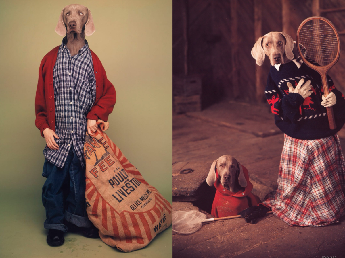 在 William Wegman 的鏡頭下,狗狗們有時顯得淡定優雅,有時則流露出桀驁不馴的神情,再放進 William Wegman 的鬼才創意,產生的作品常常表達出一種對人們日常生活的荒謬闡述,在2020年甚至舉辦了一場盛大展覽,展出他與狗狗們的日常紀錄。