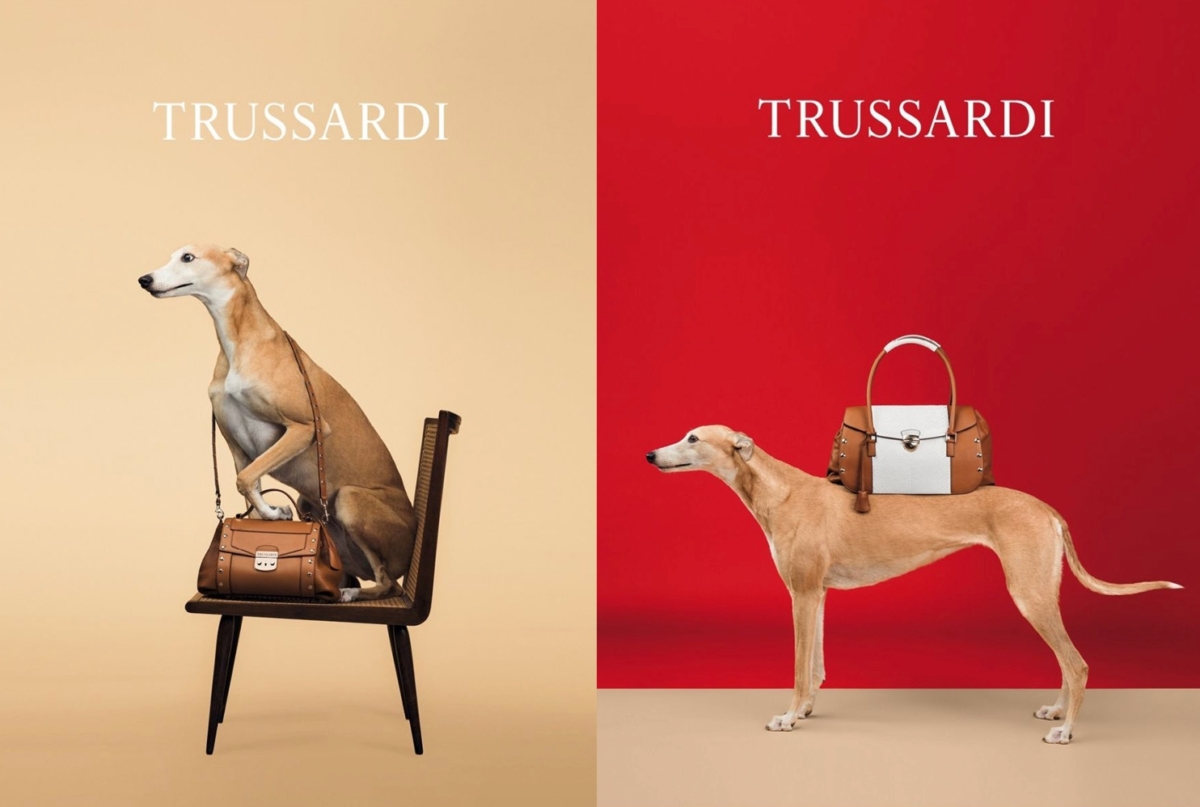 同樣喜愛寵物犬的意大利皮具世家 Trussardi ,也曾邀請到 William Wegman 為2014年春夏系列拍攝全新廣告,同時也選了獵犬擔任模特兒,揹上品牌標識性皮革包等產品,展現趣味氛圍!