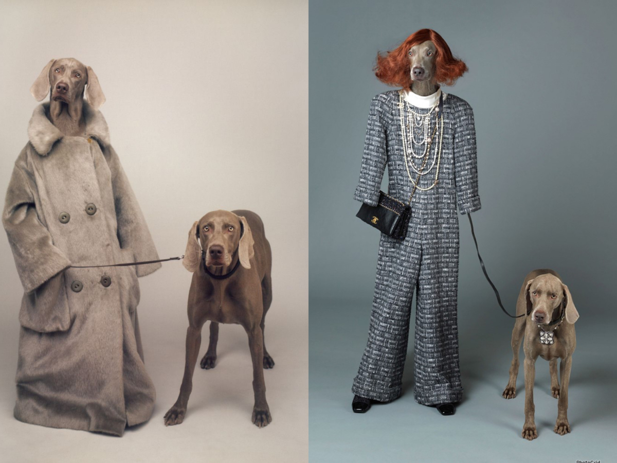 近期大家最為熟悉的應該就是威瑪犬與 Max Mara 的合作系列了吧!2001年適逢義大利服裝品牌 Max Mara 50週年紀念,William Wegman 以熟悉的威瑪犬為主角,為品牌拍攝了八組狗狗穿著 Max Mara 經典101801 駝色大衣的形象照,高冷又憂鬱的情感、眼神不屑一顧,真的就像一個大人似的。