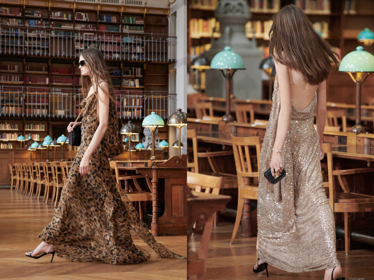 CELINE 2024夏季女裝系列坐落在擁有巴黎最美圖書館之稱的「法國國家圖書館黎塞留館」,由建築師 Jean-Louis Pascal 打造最具代表性的橢圓廳,挑高建築搭配拱形玻璃天花板,陽光灑落在各種書籍上,這棟絕美建築正好與 CELINE 工坊臨街相望,有了更不同的意義,影片依舊由 Hedi Slimane 執導和攝影,展現品牌獨樹一格的個性魅力。