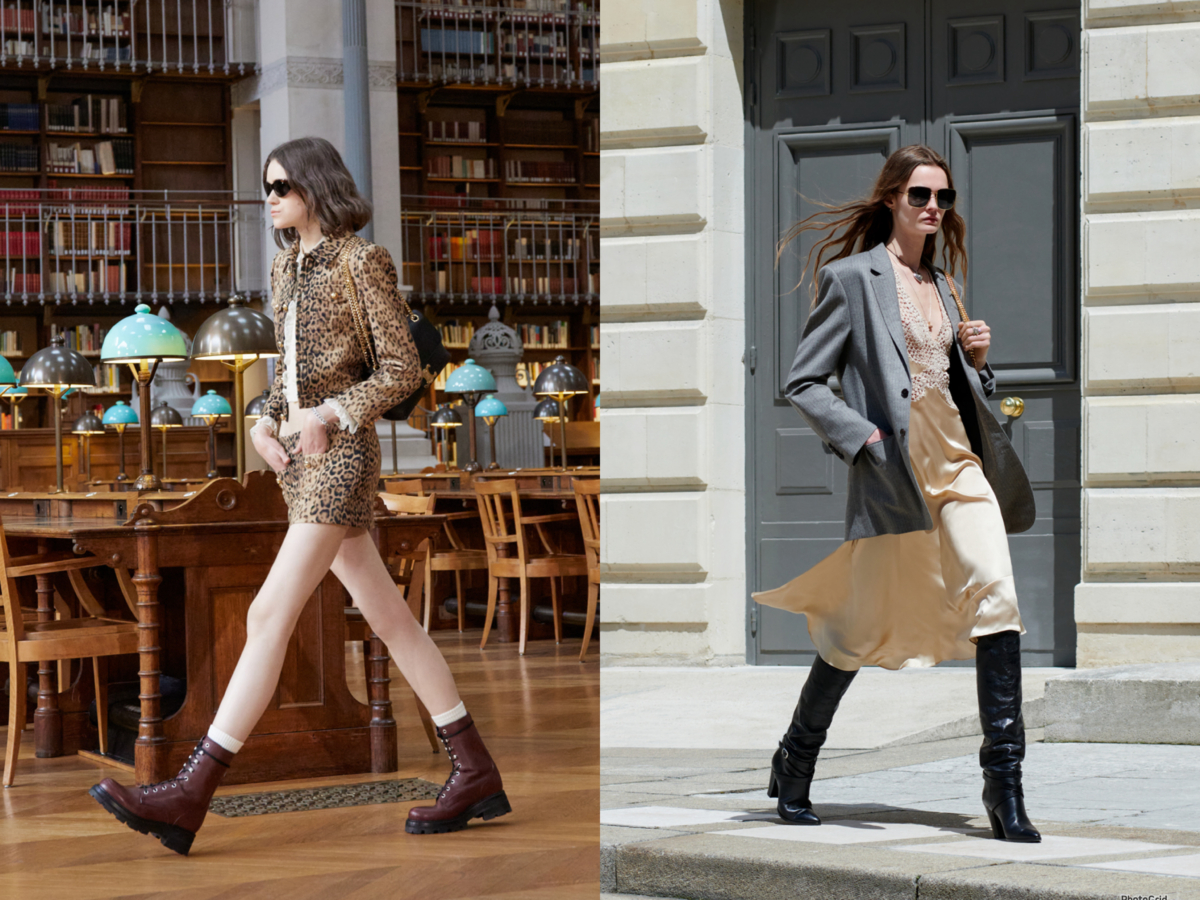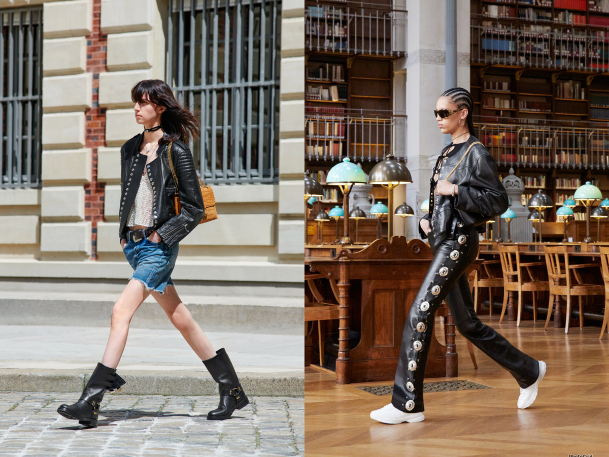 以搶眼的豹紋夾克、迷你裙和酒紅色短靴揭開 CELINE 2024 夏季女裝大秀序幕,一如既往的 CELINE 法式搖滾風格,展現「雌雄同體」的性感叛逆女孩,以 Hedi Slimane 最擅長的設計風格,將90年代末的俐落中性剪裁結合性感率性風格,包括像是緊身夾克、迷你短裙、像是睡衣質感的緞面洋裝搭配灰色西裝外套和黑色長靴,一副隨性從容的姿態,標準的法國女人穿搭。