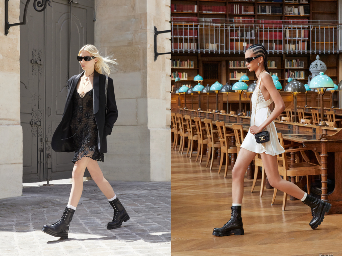 小裙裝搭配西裝外套,是本季很常看見的風格之一,毫不避諱地大方露出腿部肌膚,彷彿再訴說著:「我就是要很漂亮!」,閃亮的蕾絲布料、低胸剪裁、背部鏤空和腹肌線條,柔軟面料搭配硬挺的皮衣線條,出現的一雙雙黑色綁帶短靴,也是本次重點單品。