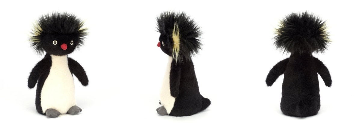 Jellycat真的太有趣了~~通心粉之外還有這隻名為「Ronnie」的鳳冠企鵝,因為這個品種的企鵝頭上都有長長刺刺的頭髮,雖然Jellycat似乎製作的有點太誇張,但爆炸頭的樣子不得不說,還真的有點萌XD