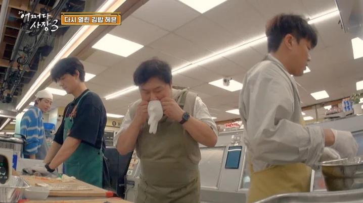 雖然趙寅成和韓孝周在節目中的自然甜蜜互動讓大家都嗑得很開心,但近日卻引發了爭議...第一天到達的他們除了要從0開始整理超市外,每天還需要製作300個紫菜飯卷出來賣!在近日播出的節目中,紫菜包飯訂單劇增,全體職員都忙著卷紫菜飯卷。而這也是引起的不衛生爭議的起因...
