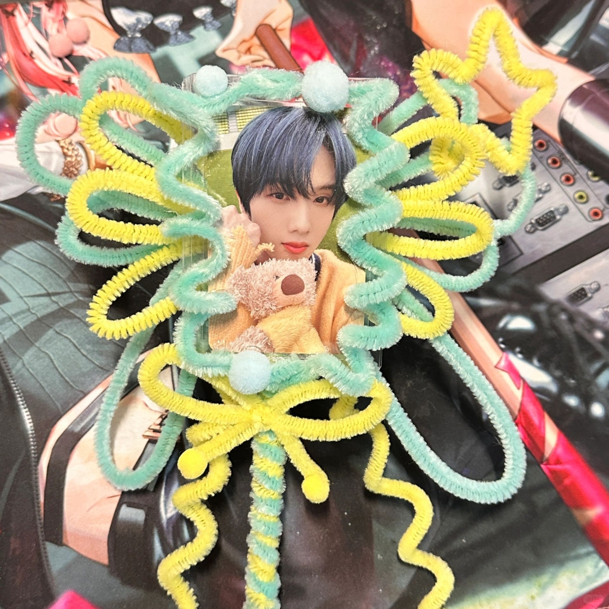 絕對不要小看粉絲愛著偶像的心!就當大家認為咕卡的發展大概就這樣時,近日卻開始流行小時候美勞課會使用的「扭扭棒」裝飾卡套!毛茸茸的材質與各種顏色的搭配,讓卡套直接升級變成立體版,有了更多的可愛造型變化。