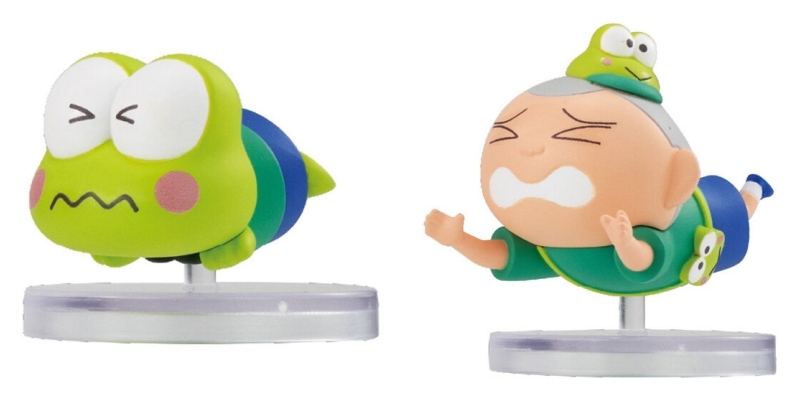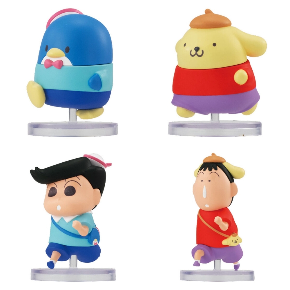 這什麼超級夢幻聯動~蠟筆小新和三麗鷗也聯名推出變裝扭蛋♡和經常看到的不一樣,這次是兩個卡通角色互相裝扮!三麗鷗角色們穿上蠟筆小新動畫中的衣服,蠟筆小新和朋友們則戴上三麗鷗人物的裝飾品、包包,Hello Kitty瞬間變得好調皮的感覺;而且還很用心的凸顯正男慌慌張張的個性,做出他跌倒的樣子連大眼蛙也跟著跌XD