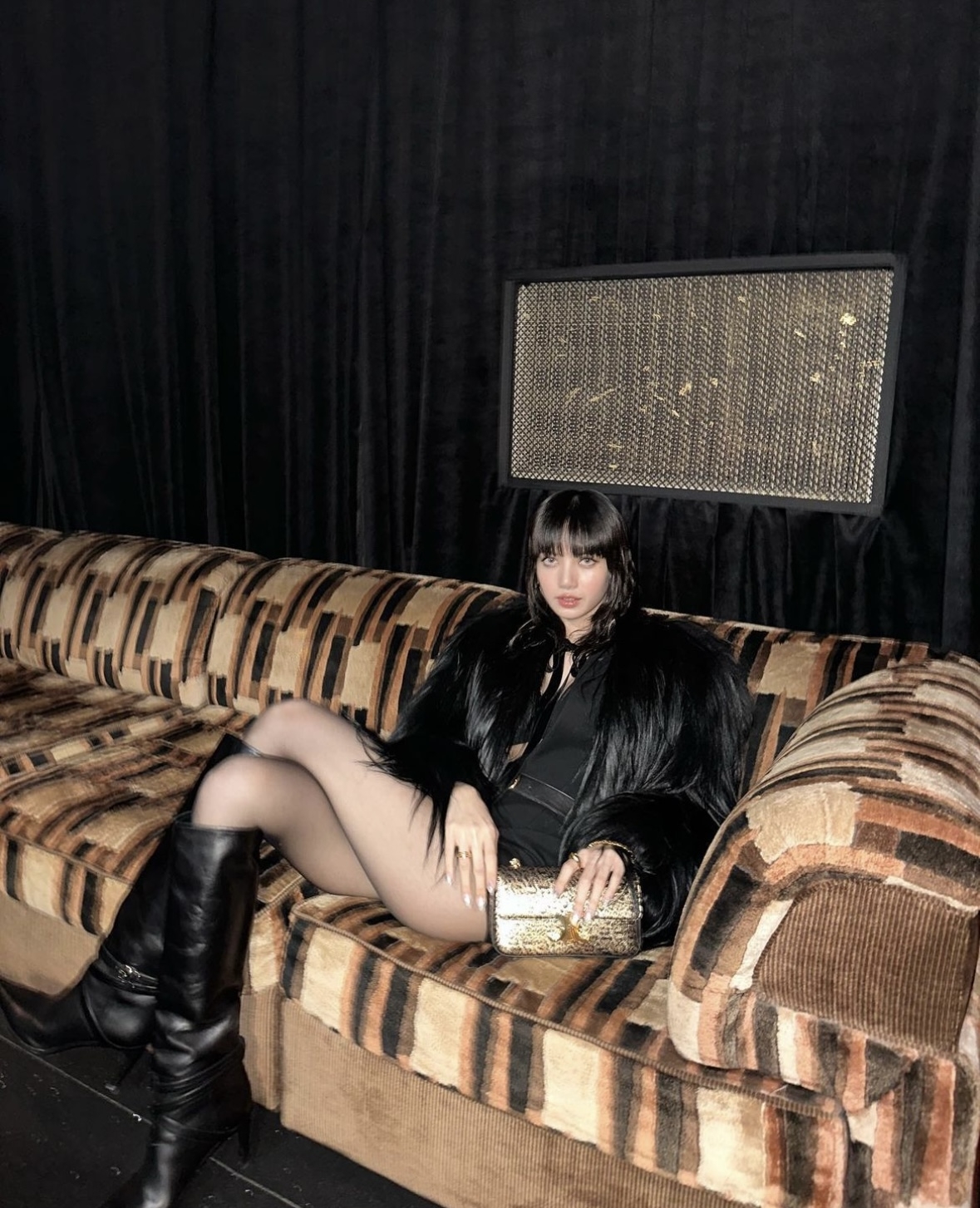 2021 年春夏登場的 CELINE Triomphe Shoulder Bag,加以延續 Triomphe Bag 的經典氣質,稍稍改良的尺寸剛好搭上腋下包的熱潮,整體變得更為俐落個性,Lisa 身上的黑色水鑽亮片款和豹紋款式太適合年末派對了吧!