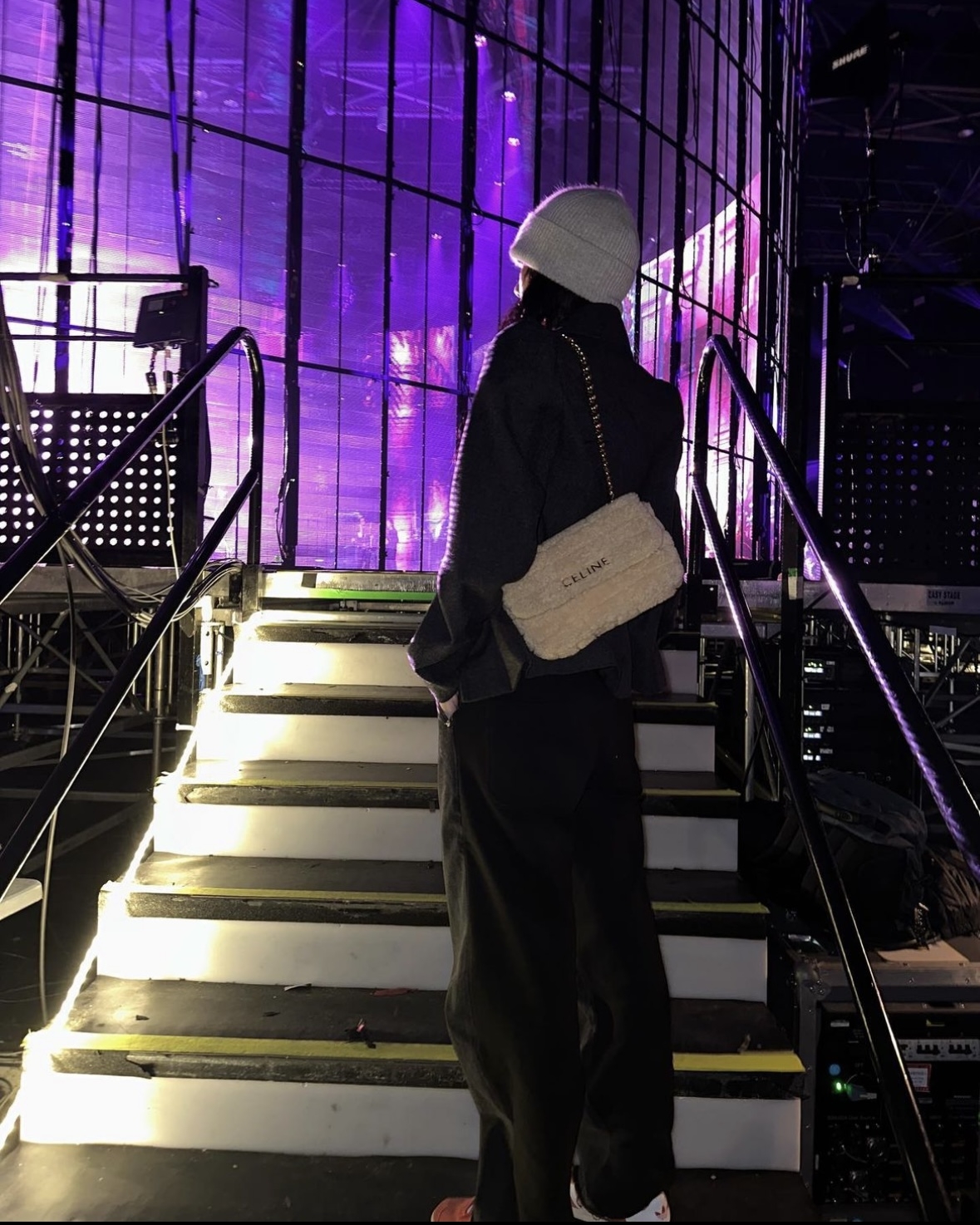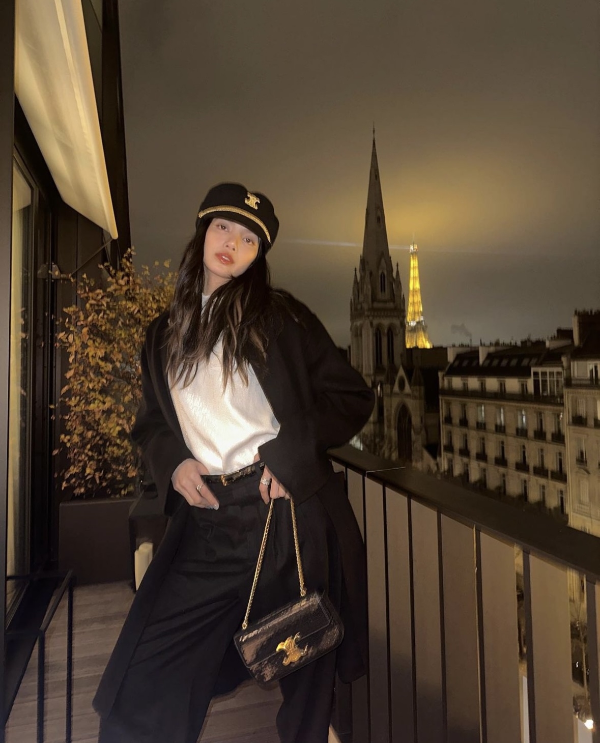 另外還有手提包和配件款的腰帶式小包,Lisa 以黑長髮和毛帽造型演繹率性又知性風格,更讓 CELINE Besace Triomphe 抹去一些復古俏皮感,反而增添了成熟個性的氣息!