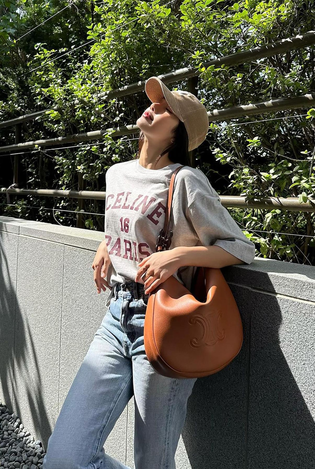 Lisa 最新釋出的社群照以一身休閒灰色 T-Shirt 搭配牛仔褲,肩揹 CELINE Héloïse 棕色手袋,似乎預告著大包將又再度回歸!採用天然圓潤的粒面小牛皮,賦予包身柔軟質感,外部是柔軟小牛皮、內層則是麂皮材質,滾邊背縫工藝將皮料拼接在一起,讓包身呈現圓潤流暢的線條,有棕色、月光色和岩石灰色的皮質款和經典的 CELINE Triomphe 標誌印花帆布款,Lisa 身上這顆皮質款棕色也正好搭上秋冬美拉德色系的時髦趨勢!