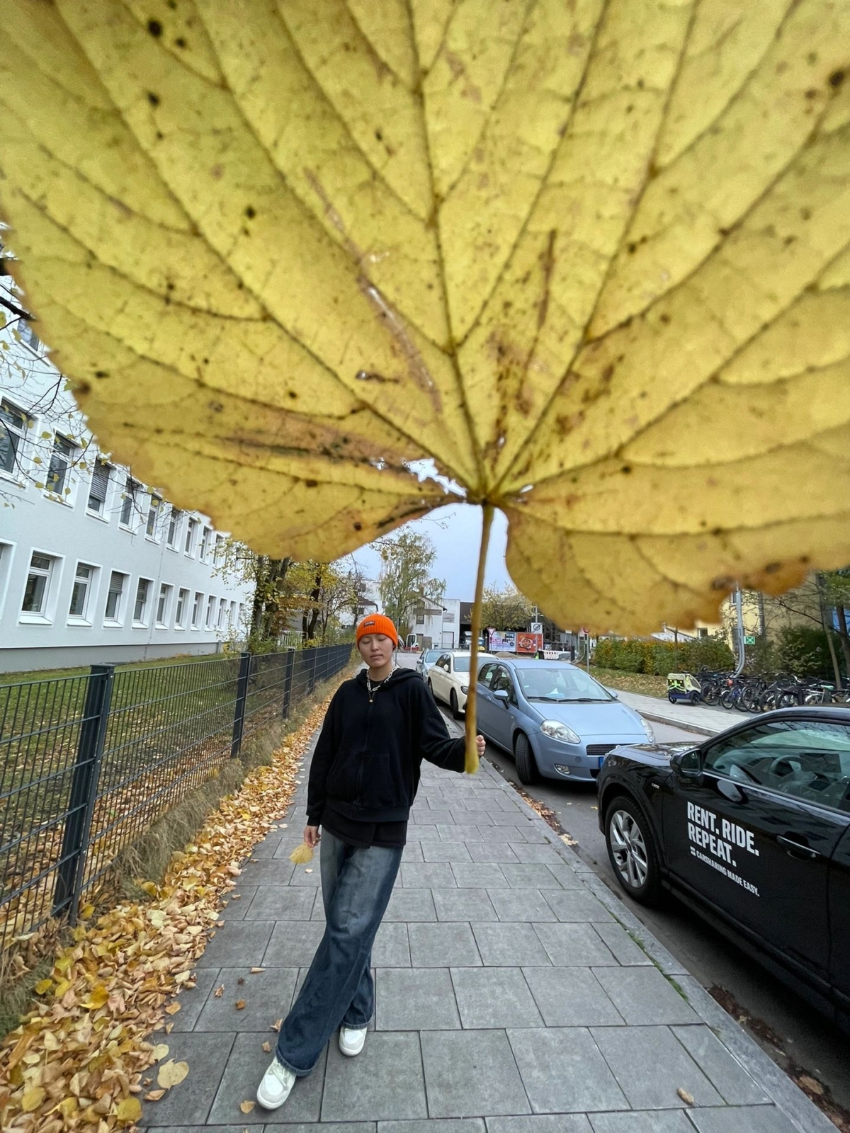 近日韓國人氣新男團RIIZE的成員Anton上傳了超有趣的照片,站在遠方的他卻像是拿了超大的樹葉,充滿新穎淘氣的照片開始引發流行,成為現在秋天最流行的姿勢。