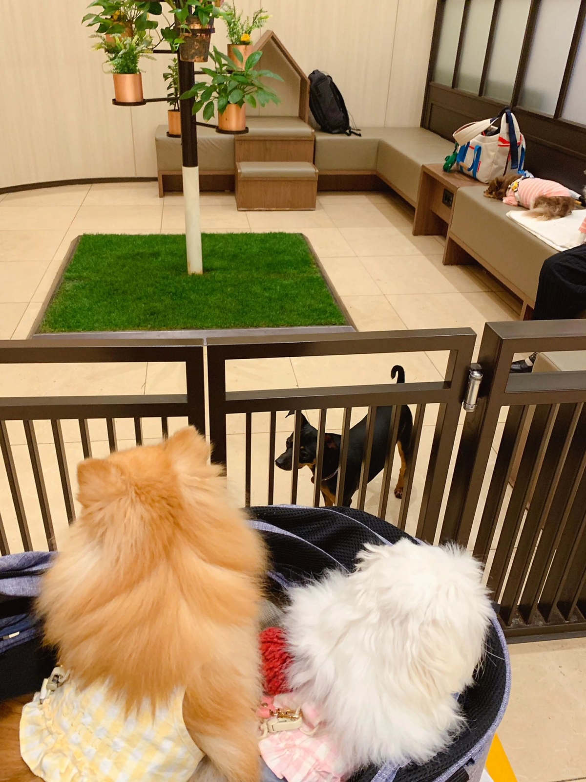除此之外,日本對待狗狗如同人類,還很貼心的分男廁和女廁!因為公狗需要抬腳對準尿尿,所以有一根柱子;母狗因為只要站著,所以只有鋪著墊子而已~