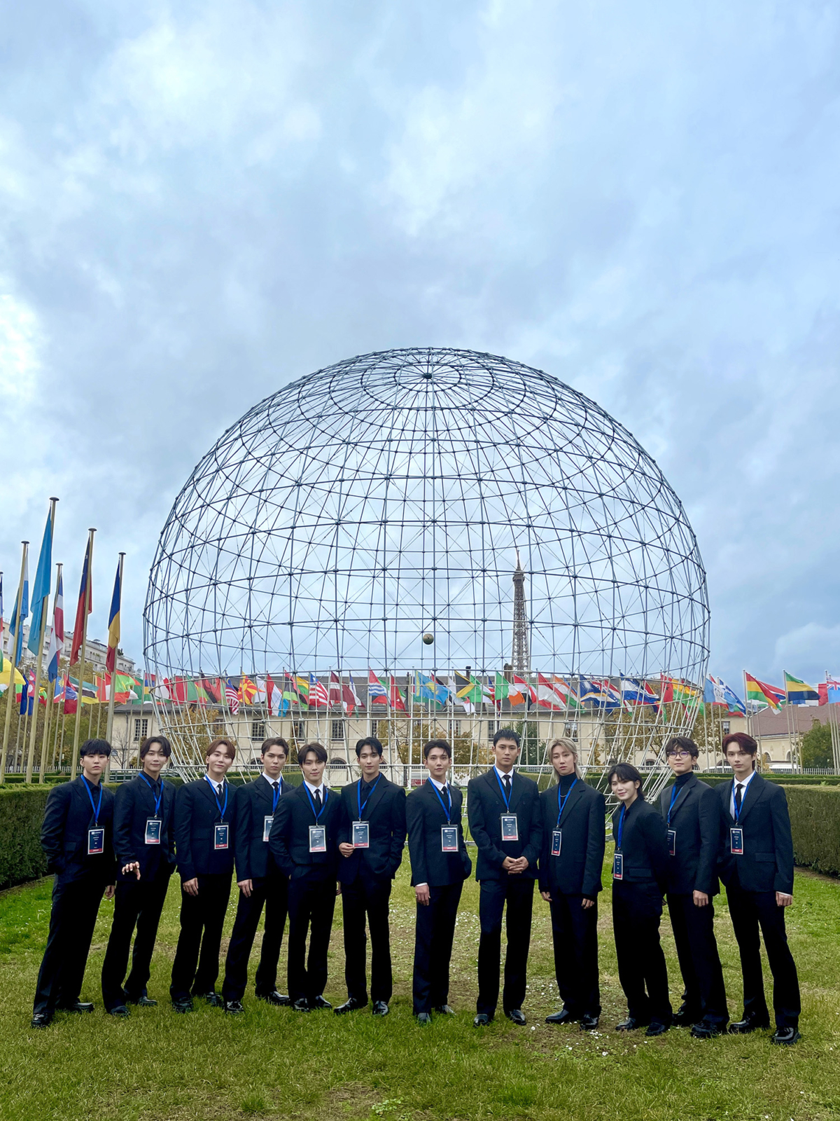 近期以新歌《Gods of music》回歸帶來全新專輯的SEVENTEEN,受聯合國教科聞組織特別邀請,因隊長S.COUPS因傷休養不克出席之外,其餘所有12名成員皆到場參加「第13屆聯合國教科文組織青年論壇」,前往法國巴黎總部單獨演講並全程直播。