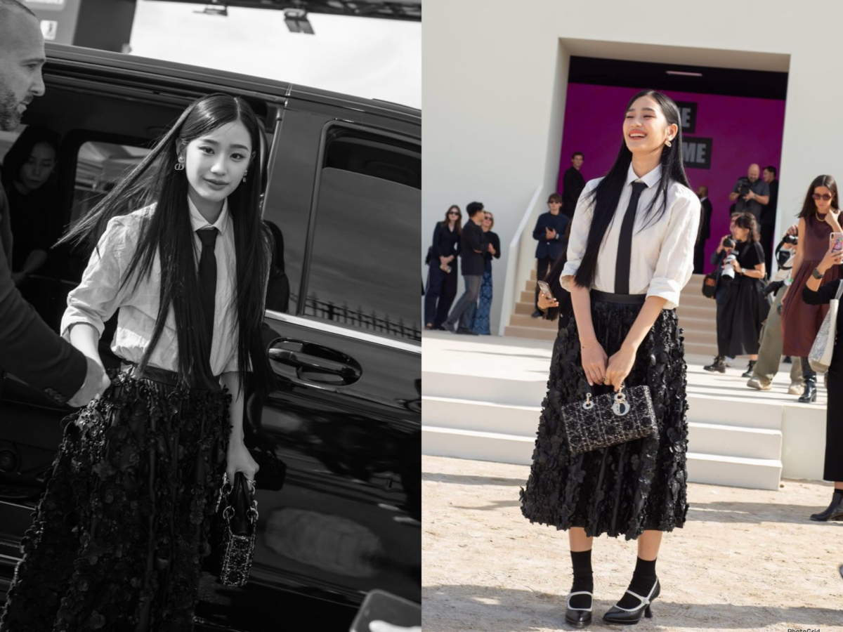 後來也出席了多場時裝週,造型一次比一次更成熟、也更符合她的獨特氣質,近期 Dior 2025 早秋系列於日本京都東寺登場,Tontawan Tu 穿著一套灰色漸層紫色的造型亮相,下身搭配印花長裙,這身復古又帶點日式感的剪裁太適合她,氣質拉到最高。