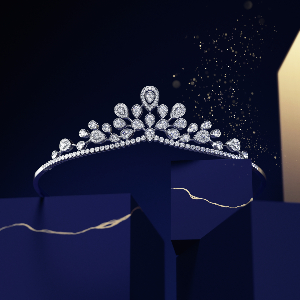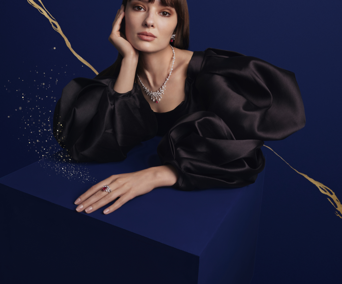 高級珠寶作品專為奢華晚會和特殊慶祝時刻而設計,為每位佩戴者帶來獨特的優雅氣息。全新的Soir de Fête項鏈靈感源自Chaumet所珍藏的金鐘花冠冕,以極具當代美感的手法重新金鐘花的花卉圖案,是對世家鍾愛自然主義靈感的頌歌,而各色貴重寶石與鑽石相互輝映,並運用標誌性「刀鋒」工藝鑲嵌主石,使金屬幾不可見,彰顯鑽石的純淨光采與彩寶的濃郁色澤。而Torsade de Chaumet戒指密鑲美鑽的輪廓則性感地環繞著玉指。