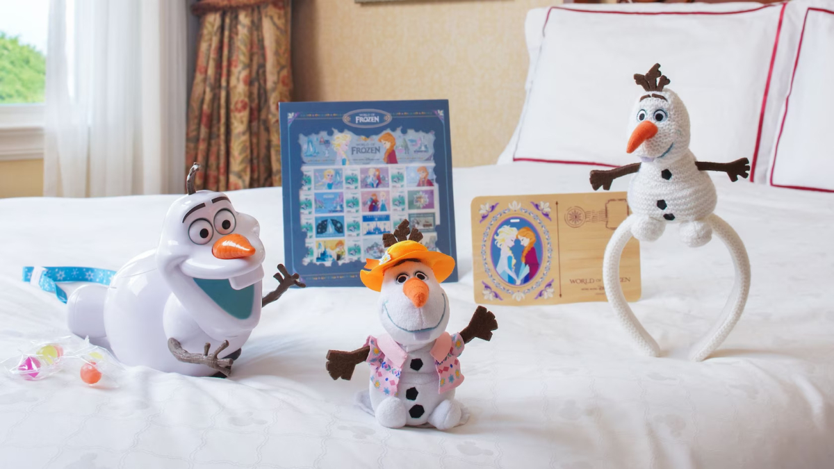 只要是入住迪士尼樂園酒店國賓廳「冰雪奇緣」主題套房的旅客,飯店準備了一系列的贈品,包括:冰雪奇緣主題個人用品包(隨機一款)、「冰雪奇緣」主題拖鞋、「冰雪奇緣」主題門卡&「冰雪奇緣」主題門掛!