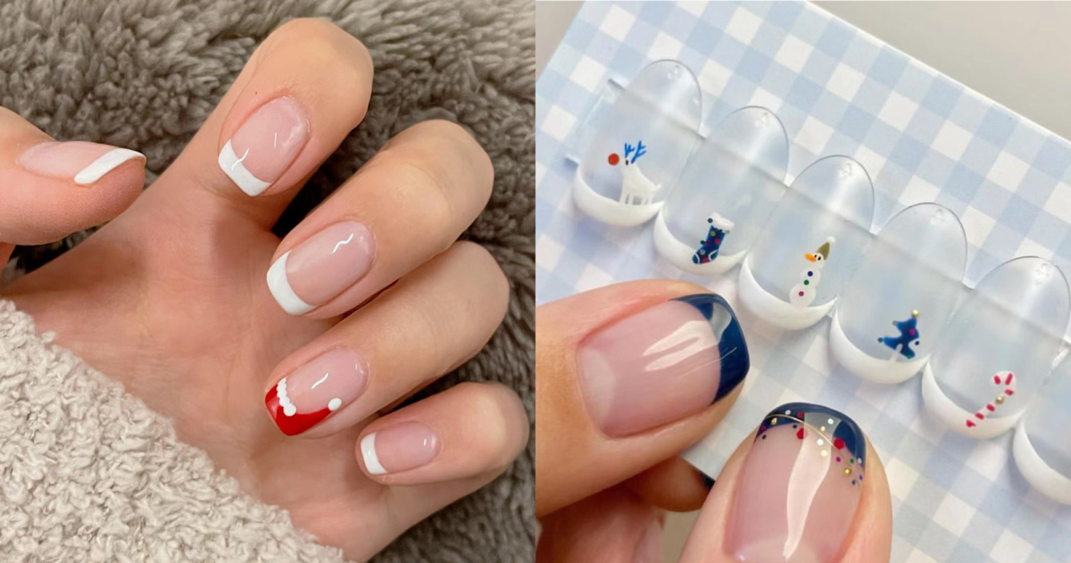 在美甲界最受到歡迎的經典款「法式美甲」融合聖誕節慶感的圖案使指尖注入滿滿法式浪漫與優雅風格。以經典的法式美甲為基礎,採用聖誕紅、藍色、白色等飽和簡單的單一色調畫在指尖,並加入聖誕元素,例如小巧的聖誕樹、閃爍的雪花或可愛的馴鹿圖案,使整體設計充滿節慶氛圍。