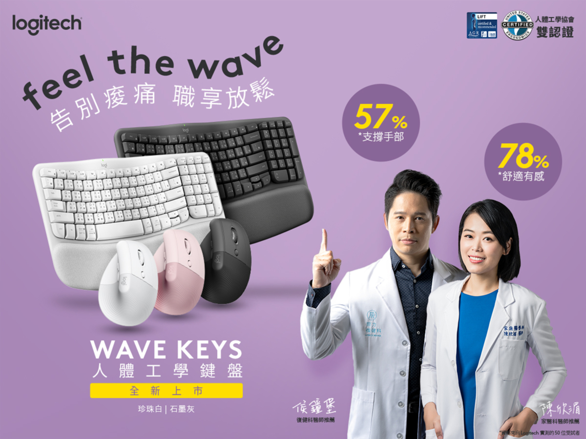 告別痠痛 職享放鬆!Logitech 全新推出 Wave Keys 人體工學鍵盤,波浪外型與精巧尺寸 、三層手托支撐、人體工學協會專業認證!