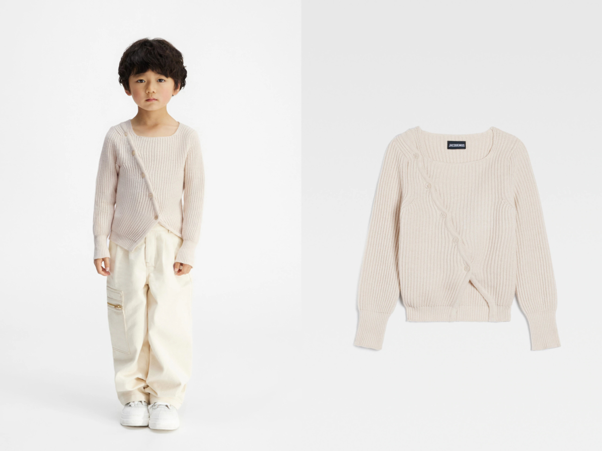 之前2021年時 Jacquemus 在「Pink 2」膠囊假日季節就曾經推出童裝單品,這季「Mini Me」是首度為只為兒童推出的系列,「Mini Me」意思是品牌設計師以「自己的小時候」為靈感,推出一系列迷你版服裝配件,基礎款單品包含工裝衣褲、牛仔夾克、長袖運動衫和帽 T,還有 Jacquemus 經典扭褶褶皺襯衫、不對稱繫扣針織毛衣,縮小後的 Jacquemus 衣著單品更可愛了!