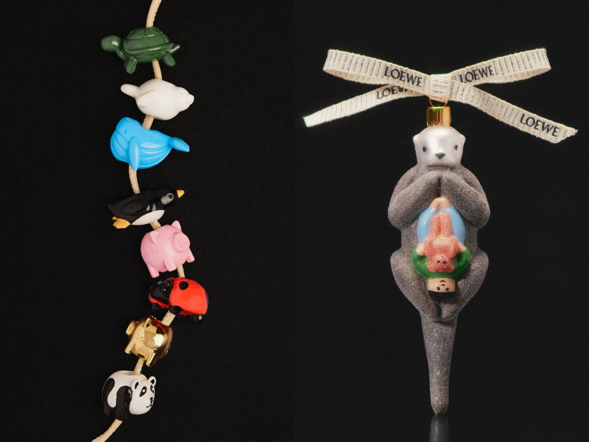 LOEWE 可以說是與創意扯不開關係,今年禮品系列的焦點就是與京都 Suna Fujita 陶藝工作室合作的限定款式,以創作者兒時回憶、兒子和愛犬的生活啟發,從大自然景色、動植物中擷取靈感,一齣齣短片都呈現出可愛童趣無厘頭的氛圍,他們筆下的角色躍上 2024 早春系列的針織服、牛仔服、經典包款、拖鞋、錢包,特別的是都悄悄的掛上淘氣狐猴、企鵝、貓熊毛氈掛飾!