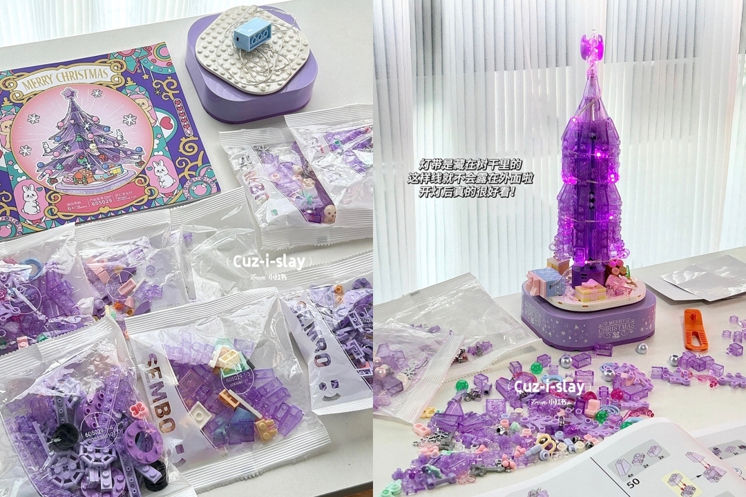 紫色聖誕樹音樂盒需要靠自己從0拼湊,相信收到禮物的朋友會在玩得過程中獲得樂趣,並因為親手完成更加珍惜這份禮物~價格為192人民幣(約572台幣)。