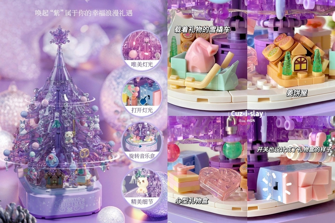 這款紫色聖誕樹音樂盒最近才開始販售,因為超夢幻的顏色與造型,已經在網路社群成為大家推薦的聖誕商品!結合積木與音樂盒的聖誕樹非常有創意,不只外觀可愛,還有燈光及旋轉功能,聖誕樹也包含著其他聖誕節象徵物品在內,超精細的設計真的很適合當作交換禮物♡