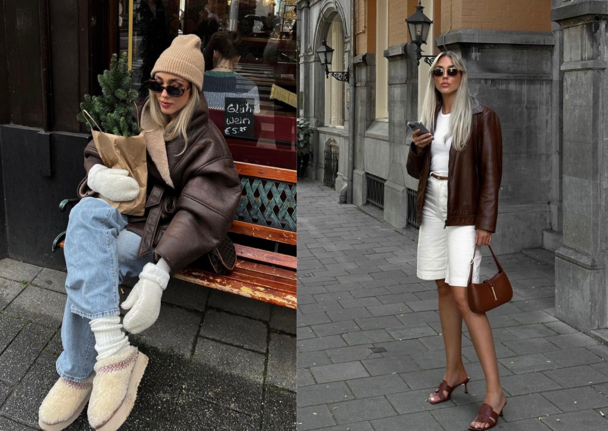 復古懷舊感「棕色皮夾克」穿搭範本!從 Rosé、Gigi Hadid、Hailey Bieber 和 Elsa Hosk 身上找靈感,5 件棕色皮衣推薦