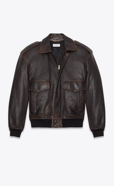 棕色皮衣推薦01: Saint Laurent 仿古小羊皮寬身外套,NT$ 228,250