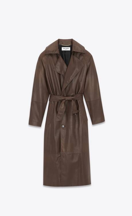 棕色皮衣推薦02:Saint Laurent 亮面小羊皮風衣,NT$ 313,100