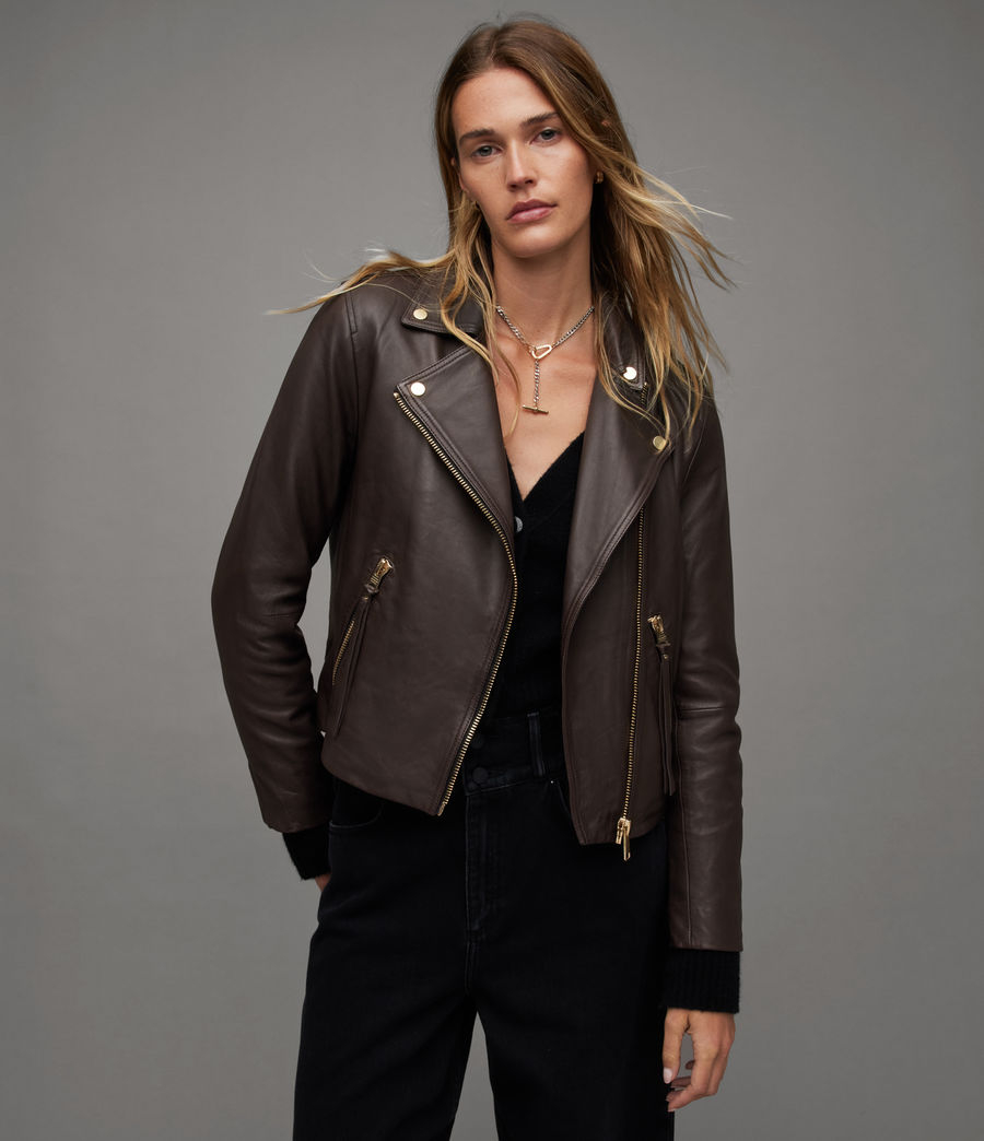 棕色皮衣推薦05:ALLSAINTS DALBY 羊皮騎士皮衣,NT$ 18,600